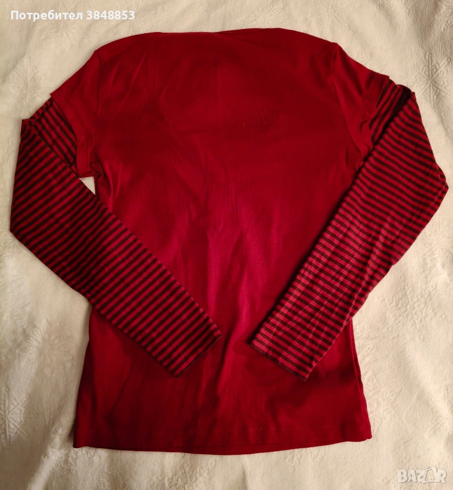 Червена блуза с дълъг ръкав, раирана, размер М.