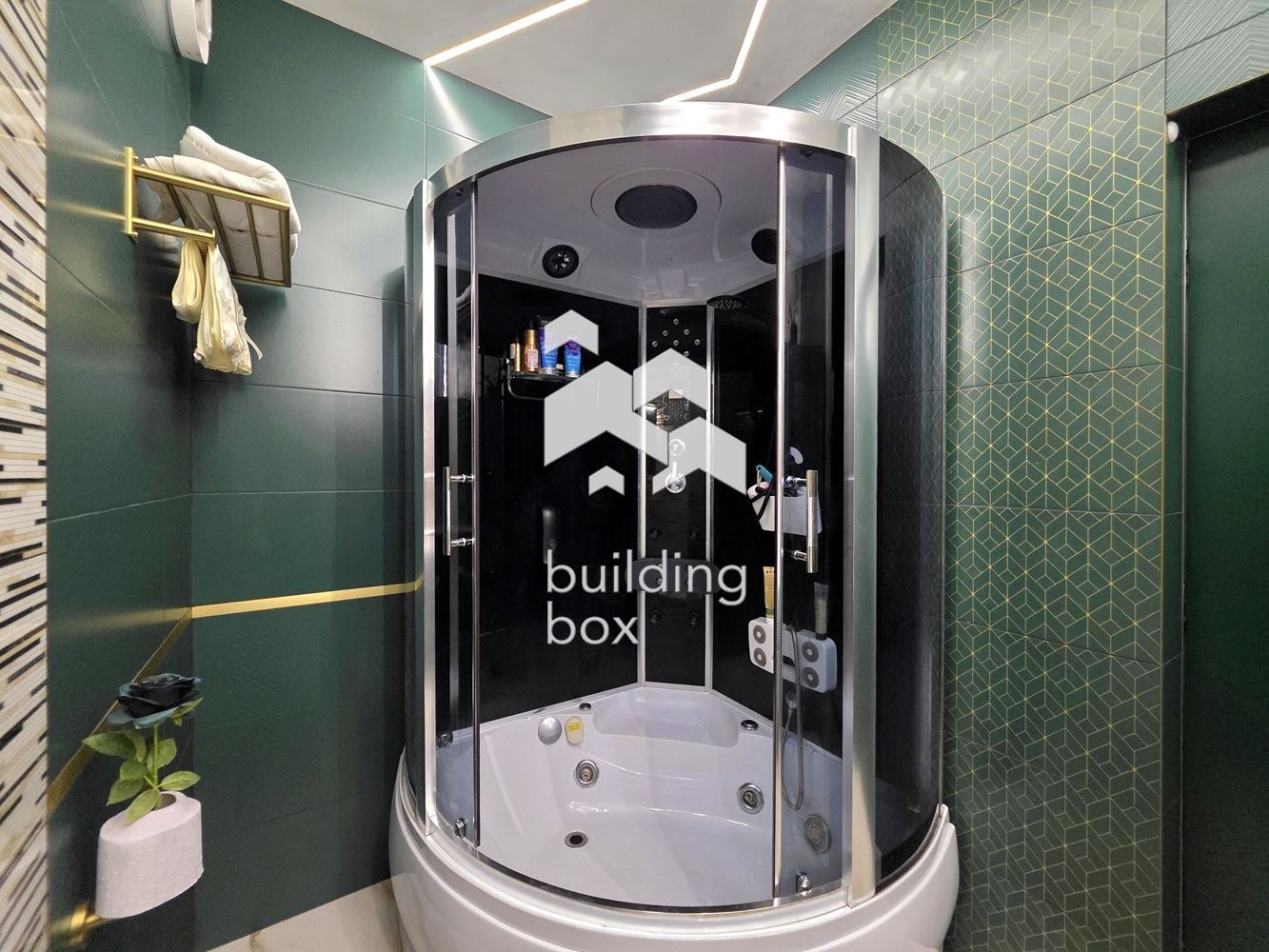 - Втора баня: Душ кабина с парна баня, джакузи и масажни функции.
