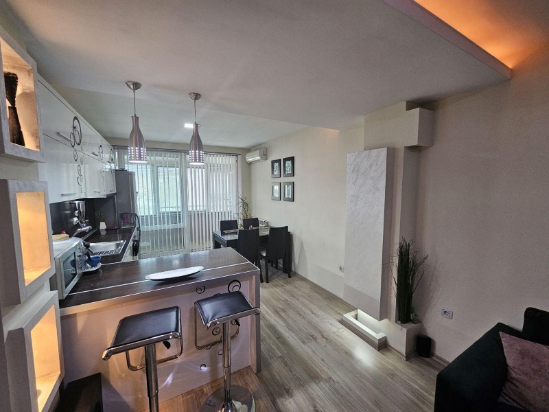 КОРЕКТА ЕСТЕЙТ Ви предлага чудесен тристаен апартамент в близост до Земеделският колеж, на 15 минути пешеходно разстояние до топ центъра на гр.Русе. Жилището е разположено на четвърти етаж в санирана сграда (без асансьор) и е със следното разпределение: дневен тракт около 30 кв.м с обособена кухненска, трапезарна и холова част, две големи самостоятелни спални, две закрити тераси, Г-образен коридор, баня и тоалетна отделно. Апартамента е основно ремонтиран, като всички стени и тавани са с гипсокартон и изолационна вата, подовите настилки са ламинат, стени шпакловани и боядисани в меки тонове, висококачествена PVC дограма, интериорни МДФ врати , входна врата Solid и др. Кухнята разполага с всички необходими електроуреди ( вградена фурна със стъклокерамични котлони, нова съдомиялна, аспиратор, пералня със сушилня-нова, хладилник с диспенсър за вода, микровълнова, кафе робот). Отоплението е на ТЕЦ, а за охлаждане има монтирани два инверторни климатика. На партерно ниво има стая за общо ползване, подходяща за детски колички, колелета и др. Входа е изключително чист и поддържан, с добри съседи. При желание на наемателя, без допълнително заплащане, може да се ползва гараж, подходящ за голям автомобил, който се намира точно пред входа. Жилището ще бъде свободно за наемане след 01.03.2026г. Без домашни любимци
