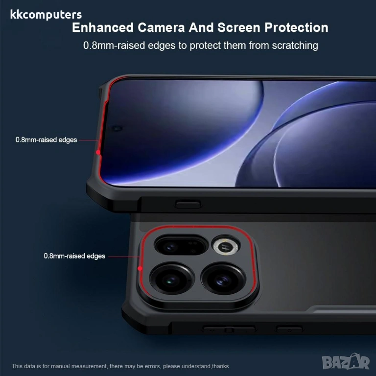 Защита на най-чувствителните зони: Издигнатите ръбове (0.8мм) около екрана и камерата създават буферна зона, предпазвайки ги от директен контакт с повърхности при поставяне.