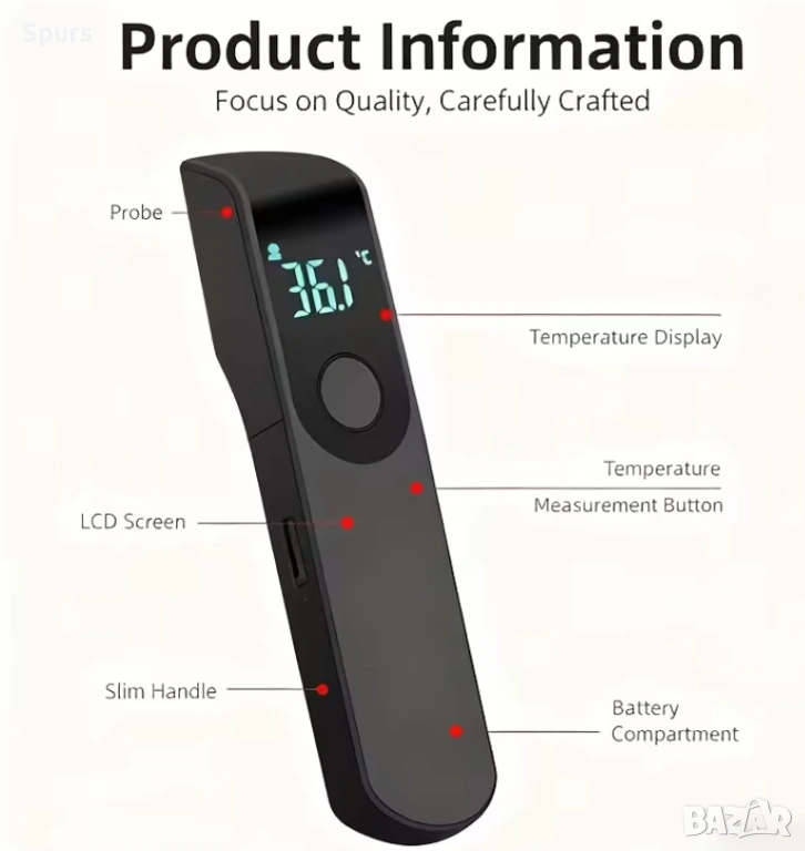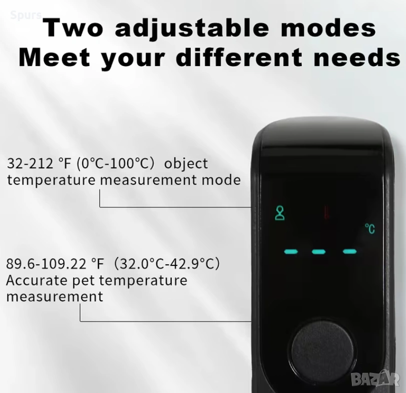 🐶 За обекти и любимци – подходящ както за измерване на повърхности и предмети, така и за температурата на домашните ви любимци.