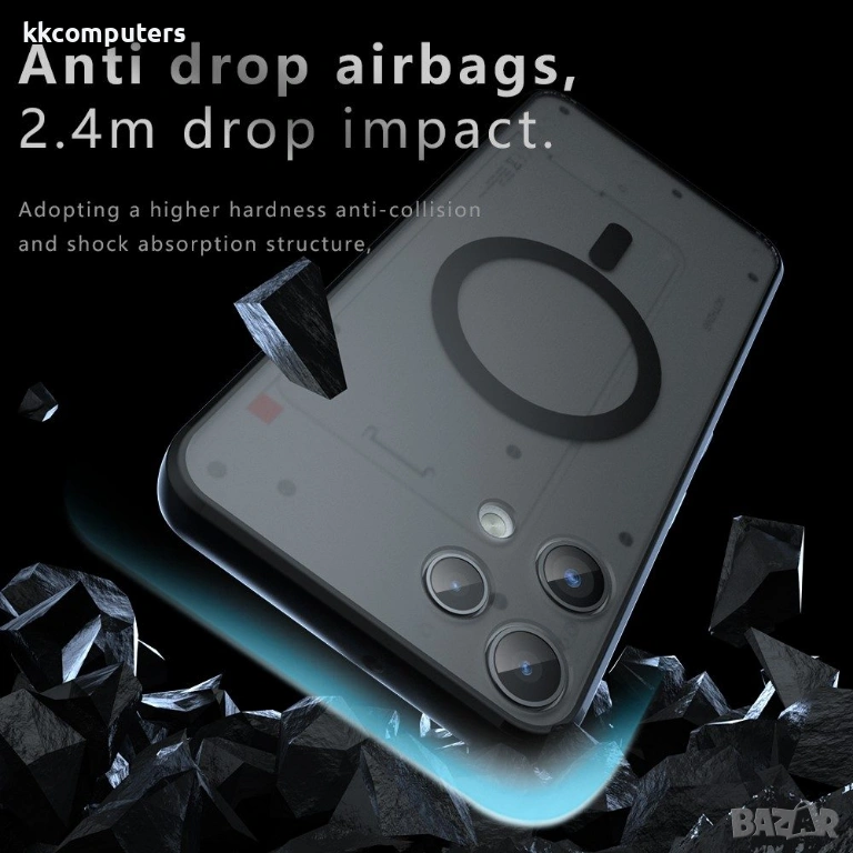 Сигурно магнитно закачане: Вграденият магнитен слой позволява лесно и стабилно закачане на телефона към автомобилни магнитни стативи и други магнитни аксесоари, без да се налага да сваляте калъфа.