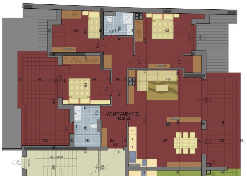 Директно от СОБСТВЕНИК/СТРОИТЕЛ! Четиристаен апартамент на 7-ми етаж от 8 етажна сграда. Състои се от дневна с кухн. бокс и трапезария, 3 спални, 2 бани с тоалетни, антре, 2 тераси. С възможност за гараж.