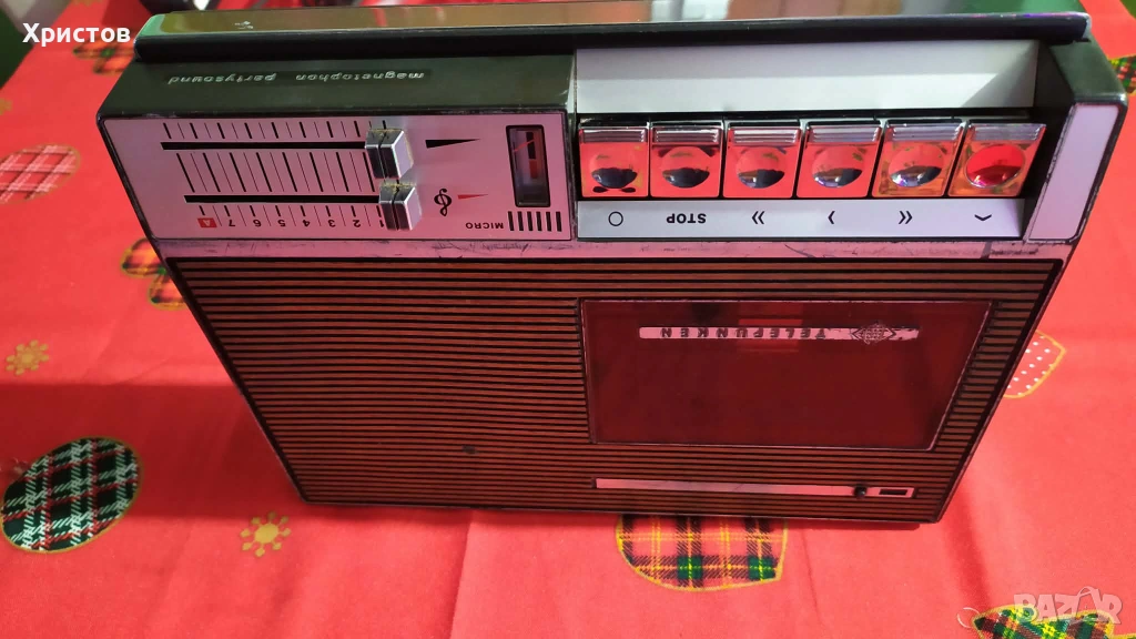 В много добро състояние Касетофона изненадващо за мен работи и свири много добре и се продава на цена от 40лв ,пращам с еконт с кабел за напрежение.