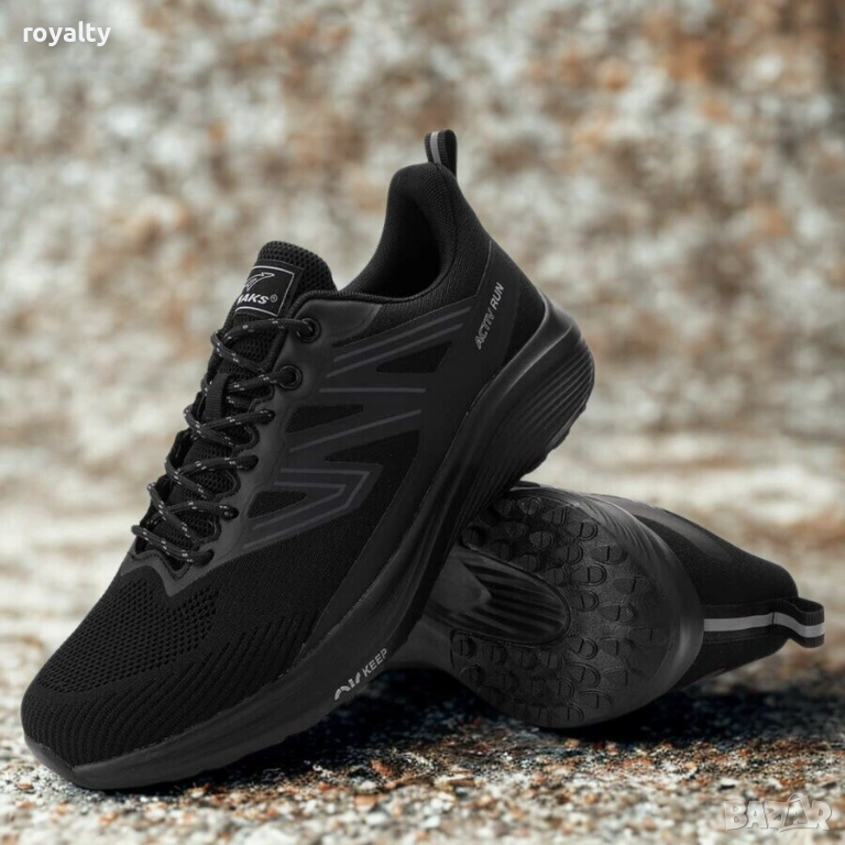 Черни дишащи мъжки маратонки. Олекотено ходило и анатомична стелка. Налични номера от 41 до 46 номер.
