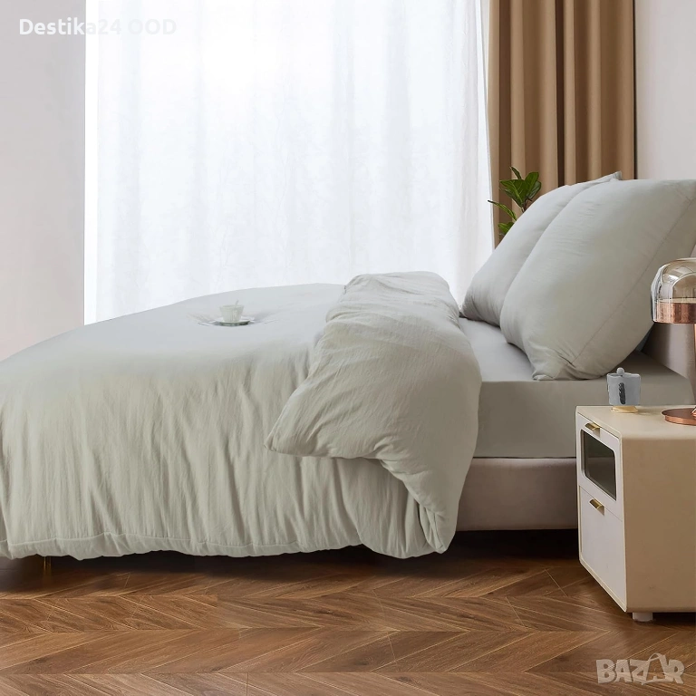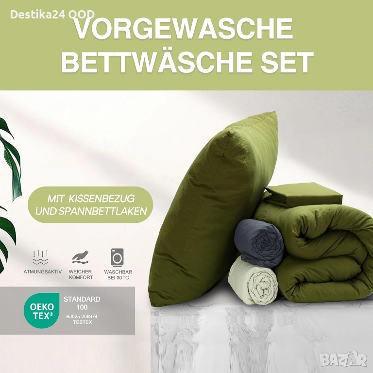 Комплектът е предварително изпран за по-голяма мекота и комфорт при използване. Материята е дишаща, лека и лесна за поддръжка.