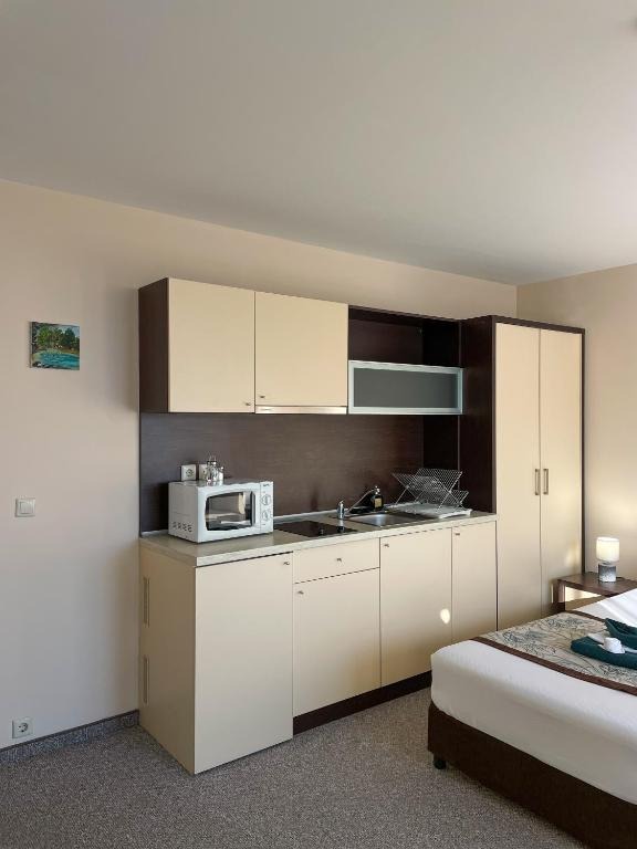 Предлагаме за продажба уютно студио с площ 32 кв.м, разположено на 9-ти етаж от общо 11 в луксозния апартхотел Berlin Golden Beach, на самия плаж в к.к. Златни пясъци.