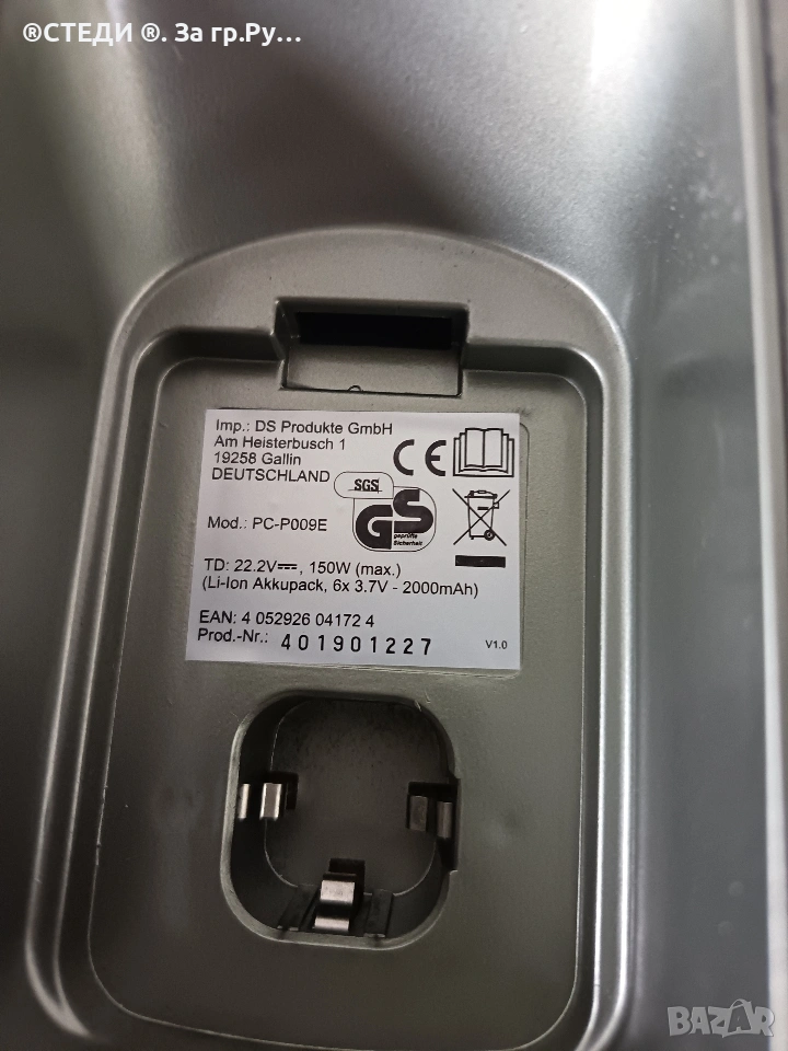 Прахосмукачката работи, но нямам зарядно за нея, така ми дойде от Германия. Има някакъв заряд в батерията все още. Ами седи тук от 2 месеца.