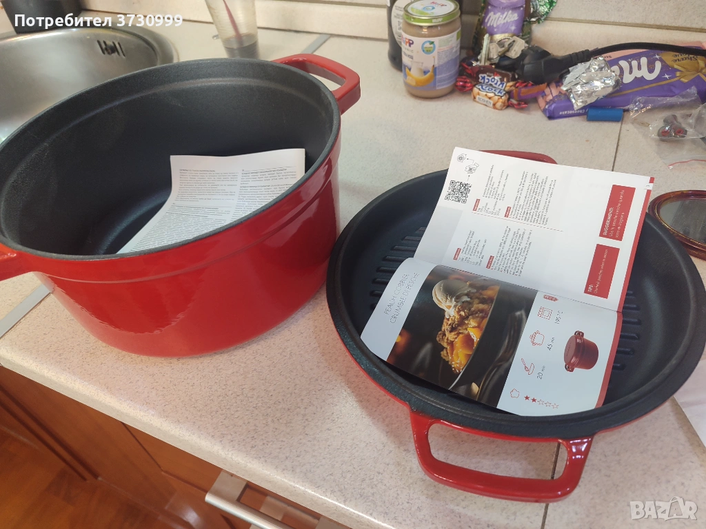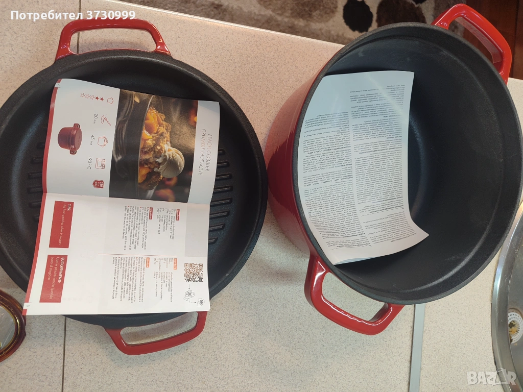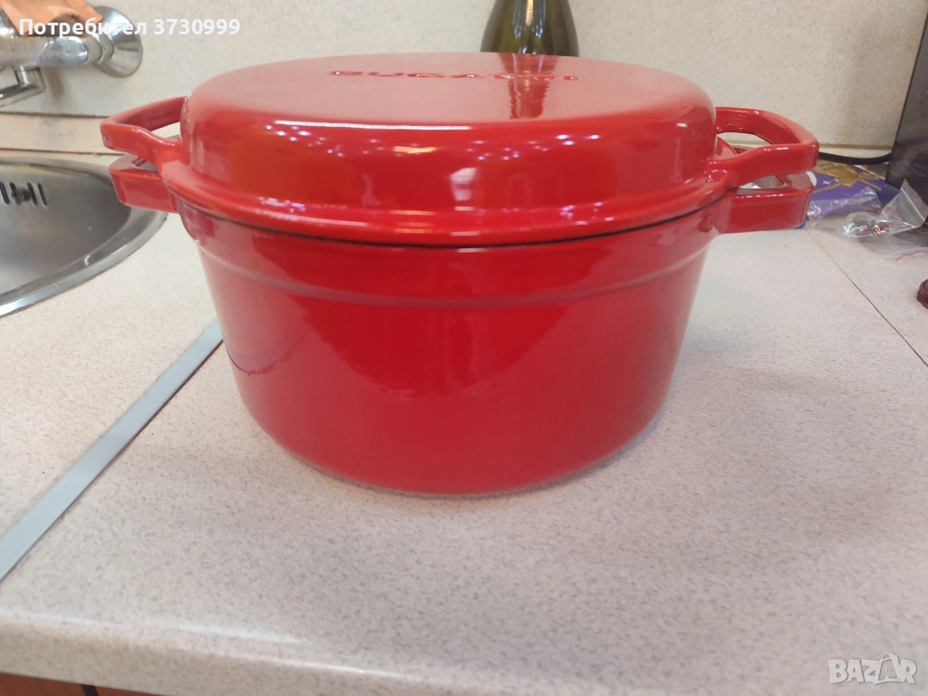 Чисто нова чугунена тенджера. Извадена от кашона само за снимки. Реалната цена е 350лв. За София и Благоевград може лично предаване.24см 3,9л Подходяща за подарък в оригиналната си опаковка!