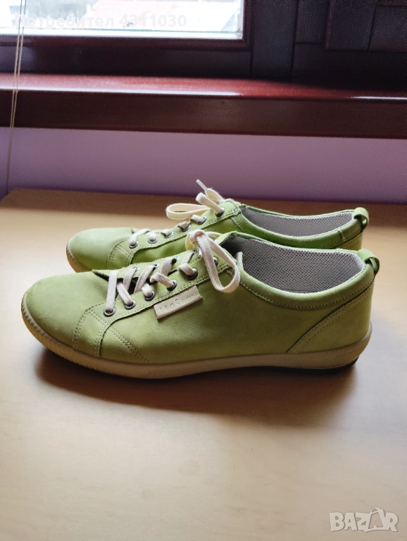 Зелени дамски обувки с връзки Legero 000823z 40 номер 26 см .стелкаСвежо зелени дамски обувки, изработени от естествен набук. Ходилото е равно, подсилено с комфортна кожена стелка. Ултра модерен дизайн в интересен цвят, решен с връзки, които регулират ширината и улесняват обуването.В отличмо състояние