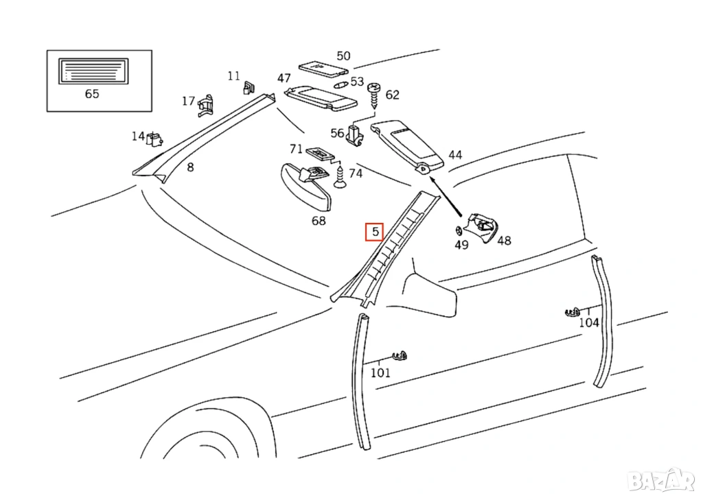 Облицовка на А-колона за Mercedes R129 SL – лява / дясна страна