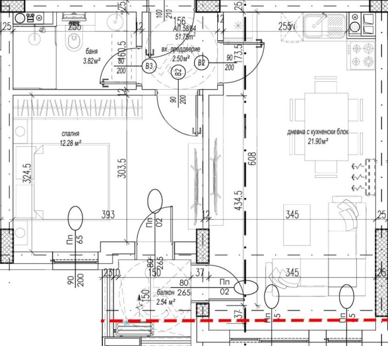 Схема на плащане 30% на Предварителен договор и 70% на АКТ16 /Разрешение за ползване/. За улеснение се прилага схема на имота! Възможност за закупуване на подземно паркомясто!