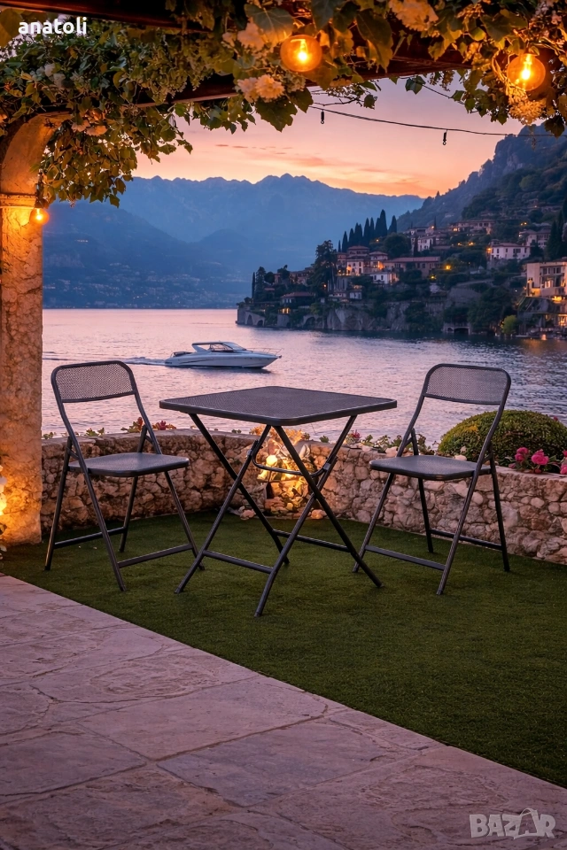 чисто нови от Германия метални Комплект сгъваеми мебели ProGarden от 3 части, сив Детайли: Сгъваеми мебели от 3 части; Размери на масата: 60X60CM Размери на стола: 43X48X81CM.