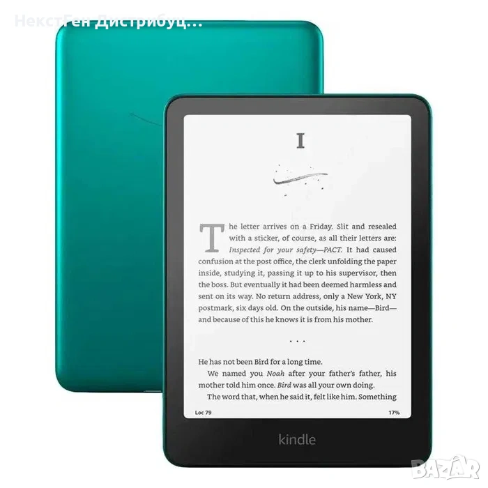 Продавам чисто нов Amazon Kindle Paperwhite Signature Edition 32GB – модел 2024 в цвят Metallic Jade.