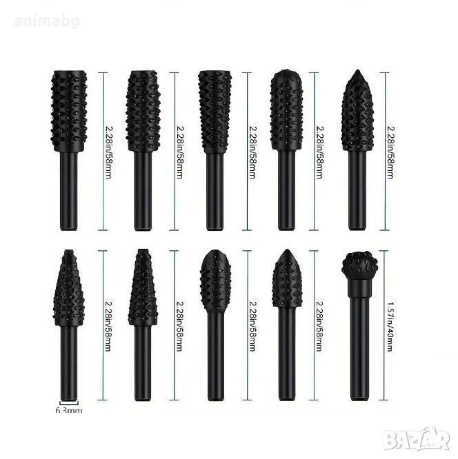 Изработен е от висококачествен метал, устойчив на износване, което осигурява дълъг живот и стабилност при работа. Комплектът предлага различни форми и размери, подходящи за детайлна обработка, рязане и полиране.