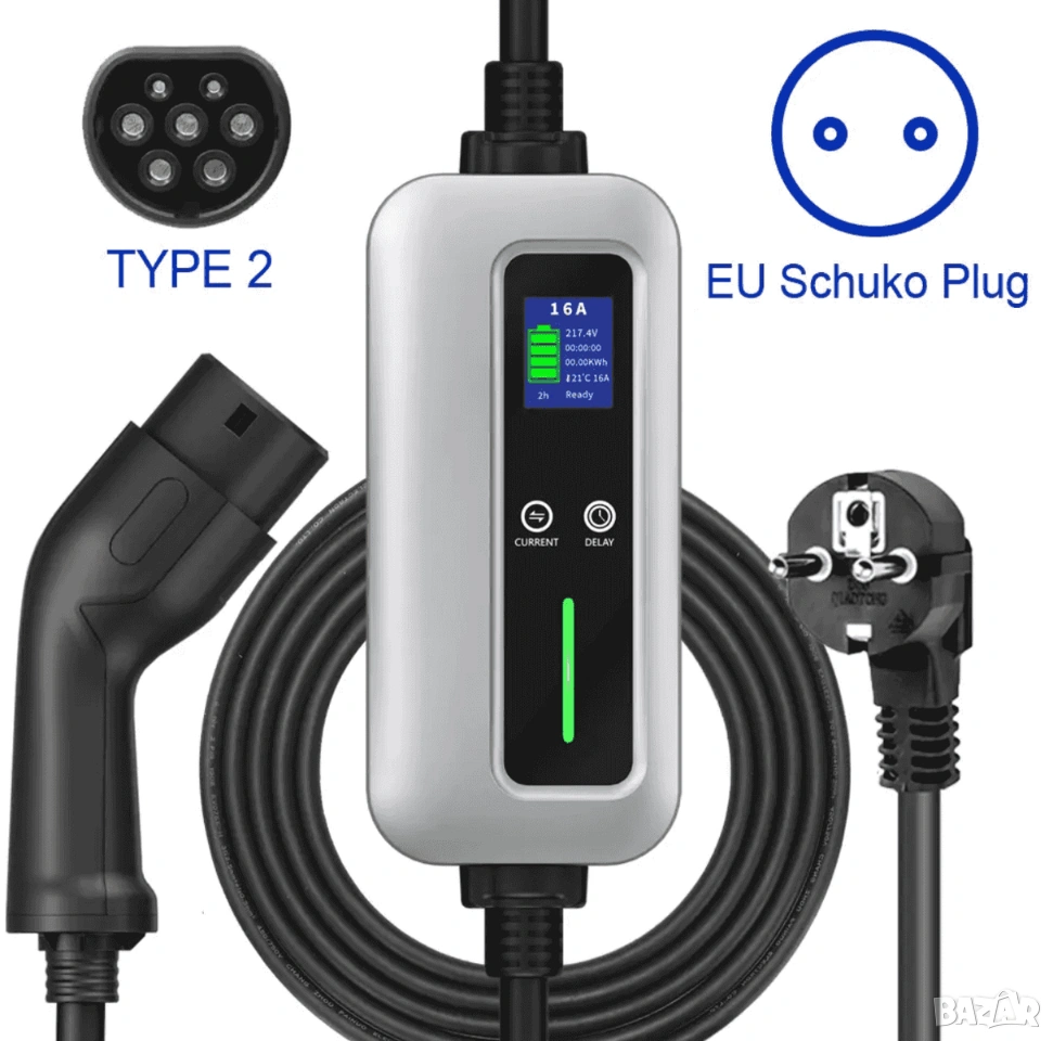 Индикация: индикация за мощност, максимален ток, напрежение, време на зареждане, температура, заредена енергия