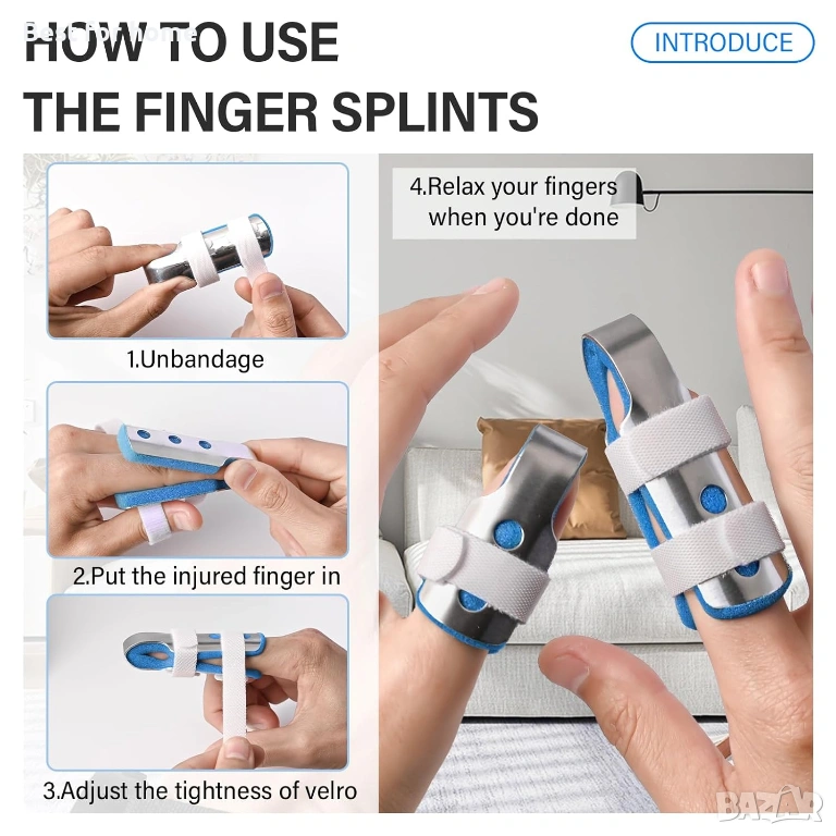Брилянтна твърдост - Алуминиевата рамка за пръсти може по-добре да фиксира и предпази наранени/счупени пръсти, за да заздравее по-бързо болката, като например при артрит и чук.