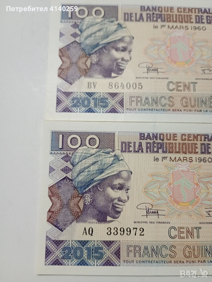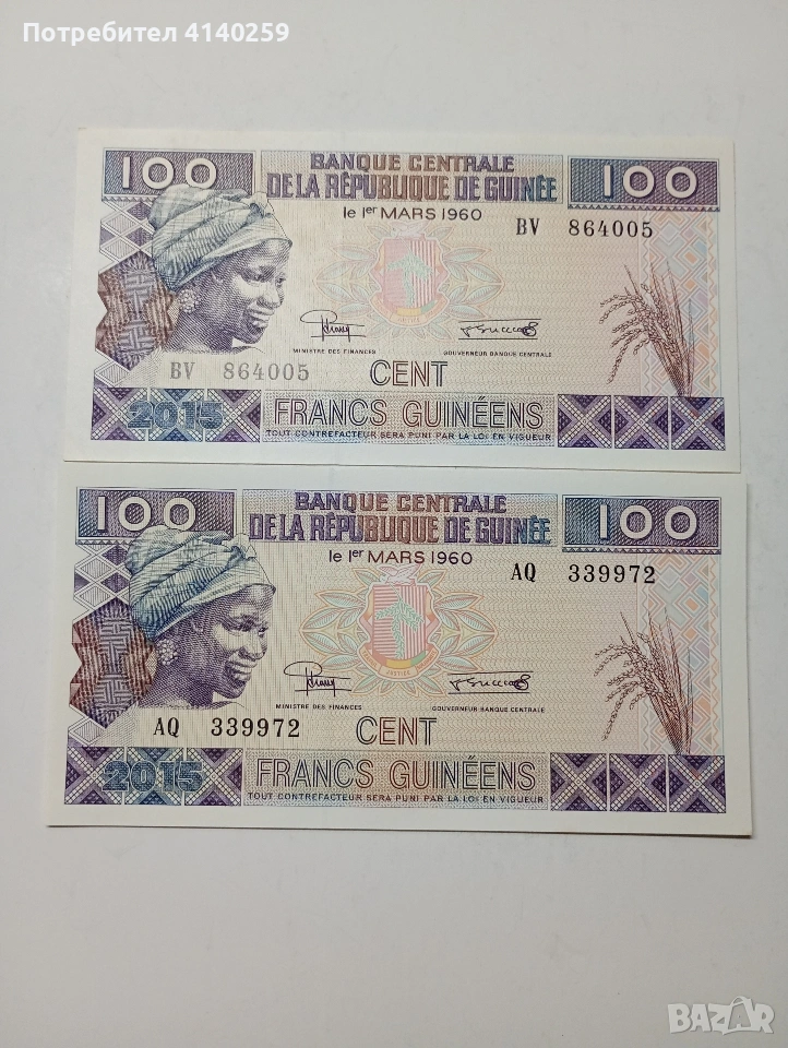 ГВИНЕЯ БАНКНОТИ 100 ФРАНКА 1960 Г ЦЕНА ЗА 2 БРОЯ СЪСТОЯНИЕ НОВО ПОЛУЧАВАТЕ СНИМАНИТЕ БАНКНОТИ РАЗГЛЕДАЙТЕ ДРУГИТЕ МИ ОБЯВИ ДА КОМБИНИРАТЕ ДОСТАВКА ЕКОНТ ЗА ВАРНА ЛИЧНО