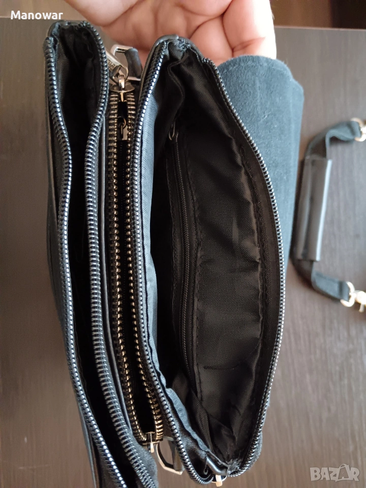Нова, от естествена кожа. Подарък ми е, но не използвам такива чанти. Седем джоба, малка дръжка + презрамка. Изпращам с преглед по Еконт или Спийди.