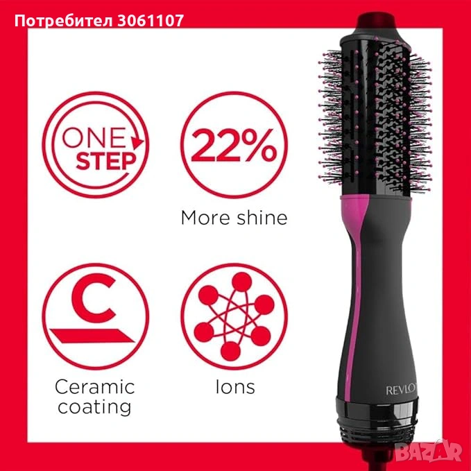 Едноетапната сешоар за коса REVLON One-Step Volumiser е иновация на Revlon. Новият 30% по-малък овален дизайн е идеален за средна и къса коса. С една стъпка изсушавате и оформяте косата си, придавате й блясък и я поддържате здрава и естествена.
