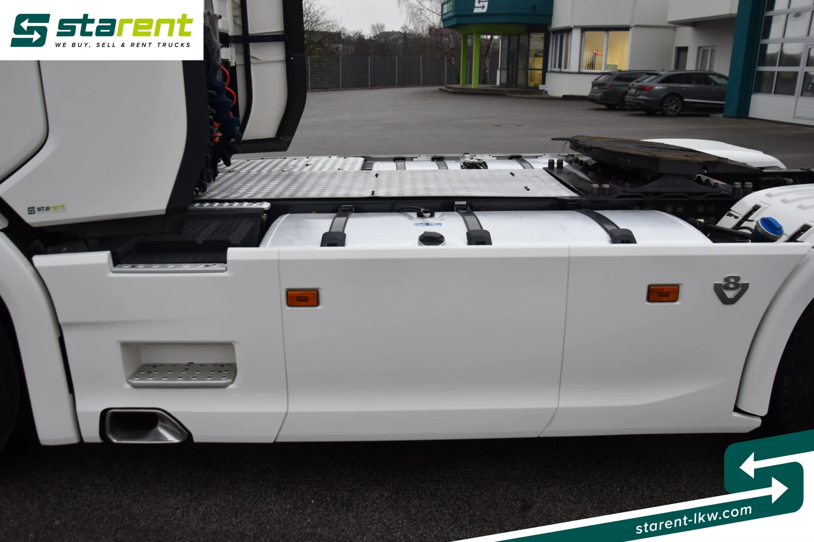 Scania S580 V8 с допълнителен климатик, ретардер, кафе машина, навигационна система и алуминиеви джанти Накратко Първа регистрация: 21 януари 2021 г. Двигател: 581 к. с. / 427 кВт Пробег: 398 277 км Цвят: Бял Евро стандарт: Евро 6 Трансмисия: Автоматична Гуми: 1-ва ос: 385/65 R22. 5 2-ра ос: 315/70 R22. 5 Забележка: Налично веднага Специално оборудване: S580, V8, ретардер, допълнителен климатик, отопляеми/вентилирани седалки за водача и пътника, кожени седалки, кожен мултифункционален волан, кафе машина, алуминиеви джанти, навигационна система, климатик, усилвател на климатика, кантар за оси (индикатор за натоварване), автоматична трансмисия, LED фарове и задни светлини, сенник, 2 въздушни клаксона, капак на резервоара и странични калници. Спойлер на покрива и капаци на колелата, боядисани в цвят цвят на каросерията, предупреждение за напускане на лентата, сензори за сблъсък, асистент за потегляне по наклон, автоматични фарове, кожен волан, хладилник, подготовка за телевизор, спомагателно отопление, кабина с въздушно окачване, четири въздушни амортисьора на задния мост, превключвател за повдигащ се мост, дистанционно управление, автоматичен климатик, CB радио, сгъваема маса за пътника, два алуминиеви резервоара за гориво (700 литра + 500 литра = 1200 литра), две легла, Bluetooth, USB порт, AUX порт, 12V и 24V електрически системи, предварително окабеляване за бордово устройство (OBU), сертификат за ниско ниво на шум. Стандартно оборудване: Бордови компютър, стелки за пода, блокировка на диференциала, тонирани стъкла, електрически регулируеми и отопляеми огледала, електрически стъкла, завеси, ABS, ASR, дискови спирачки, круиз контрол, резервен ключ, комплект инструменти, теглич за пето колело, капаци за колела, работни светлини. _______________________________________ Вътрешен номер за справки: SZM26013 _______________________________________ офис телефон: +43 676 840 710 700/WhatsApp повече снимки и подробности моля вижте www. starent-lkw. com За да бъдете винаги информирани за нашите предложения, последвайте ни във Facebook, Instagram и се абонирайте за канала ни в YouTube.