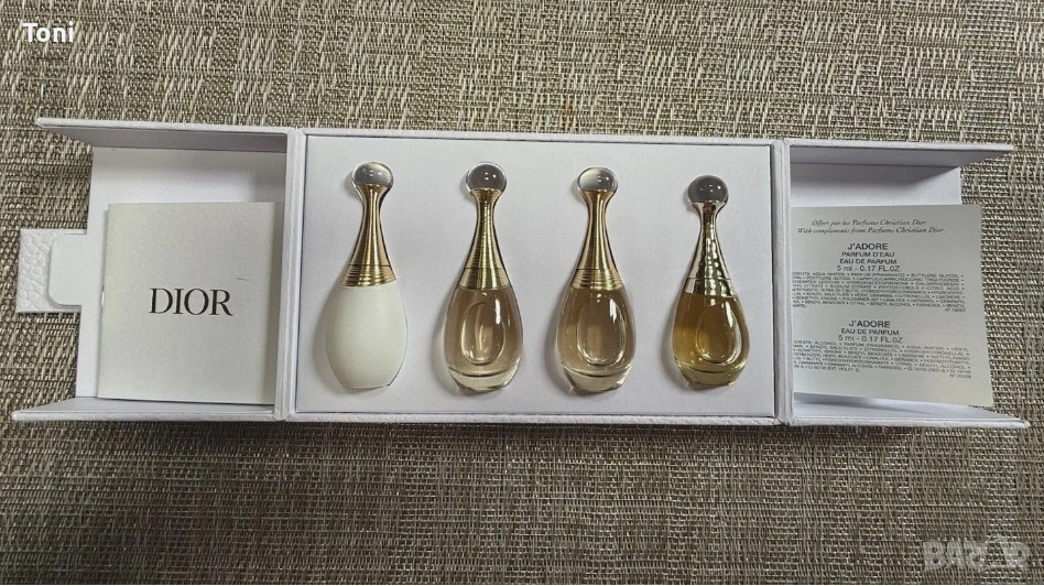 J'Adore L’Or Essence de Parfum 3.5 ml. Налични са 4 комплекта.Цена 58 € за брой. 7.Dior Sauvage elixir. Най добрата версия на Демаши от серията Sauvage.Аромат описван от доста като шедьовър,тъмен,балсамов,мъжествен,внасящ класа.Незнайно защо разполагаме с три броя от него и трите разпечатани (мъжка му работа:).Обявения за продажба е разфасовка от 60 мл с липсващо съдържание максимум 5 мл.Цена 131 €.Всички аромати са купуване от чужцинамкъдето живеем.Едни са от физически а други от онлайн магазини,От някой пазя и фактурите за покупка.За друга информация пишете.