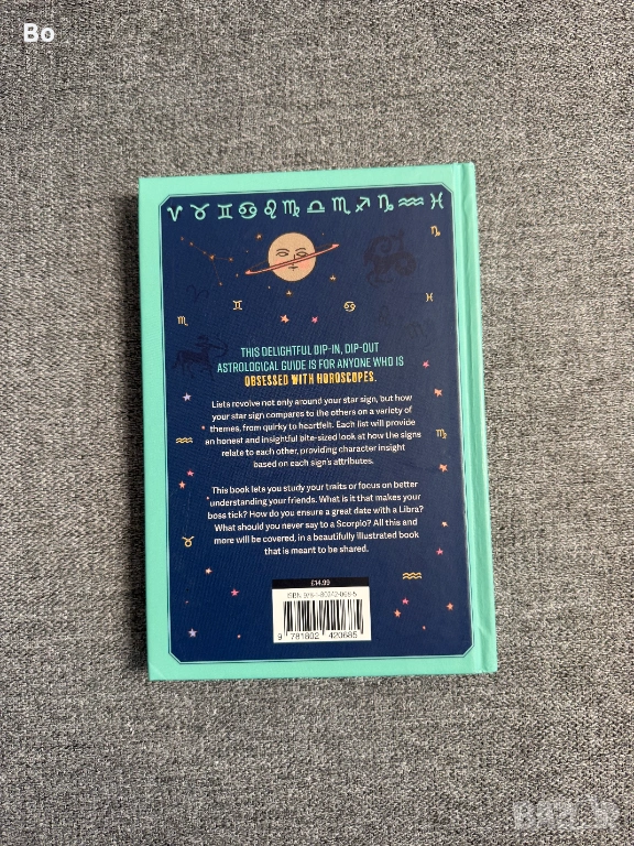 Продавам книгата “Zodiac Connections” от Alise Morales – цветно и забавно издание за любителите на астрологията. Съдържа интересни списъци, описания и илюстрации за всяка зодия.