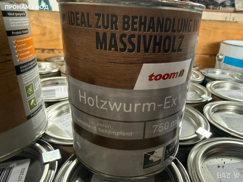 Специален импрегнант за дърво за вътрешна употреба, който защитава здравото дърво от нападение от дървояди или убива вече активни ларви и възрастни насекоми, които вече са проникнали в дървото. Подходящ за вътрешни помещения. Нанася се с валяк, четка или пръскане. Препаратът прониква в дървото, убива вредителите и създава защитен слой. След изсъхване може да се боядиса, лакира или да остане незакрито, в зависимост от нуждата. ” Toom “се предлага в разфасовка от 375 мл на цена от 8 евро и 750 мл на цена от 15 евро