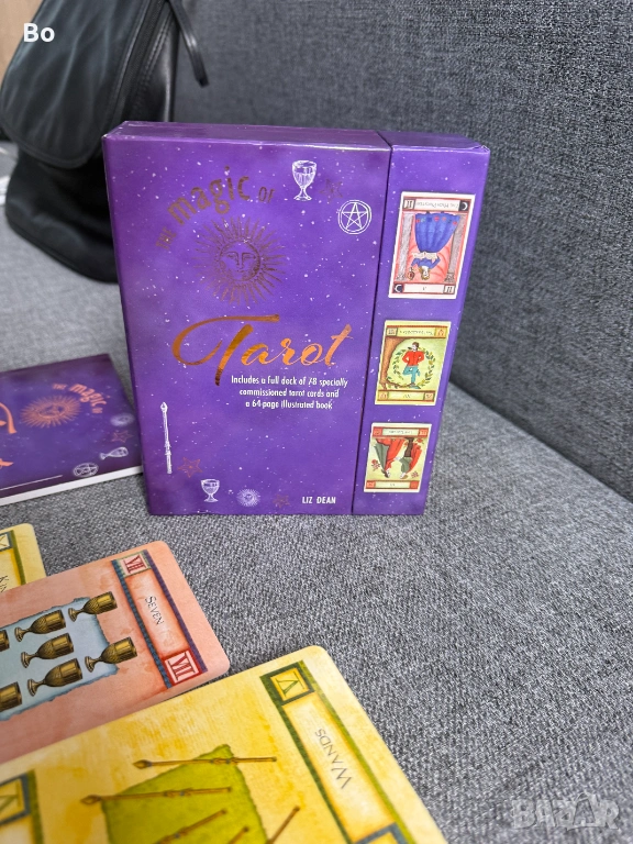 Продавам “The Magic of Tarot” от Liz Dean – красив комплект, включващ пълно тесте от 78 таро карти и илюстрирана книга с обяснения. Подходящ за начинаещи и за хора с интерес към таро.