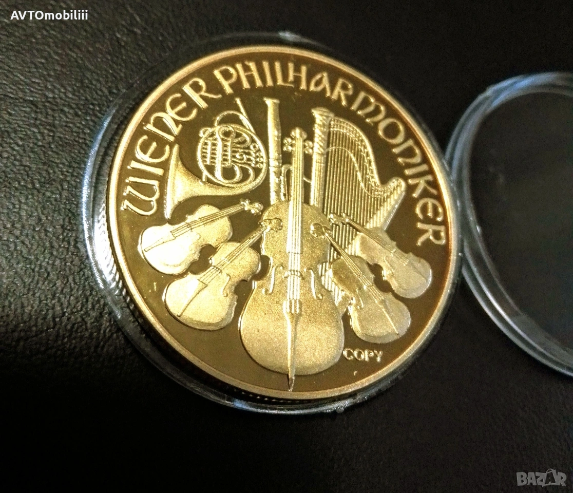 Голяма позлатена монета Виенска филхармония → Обява 53415376