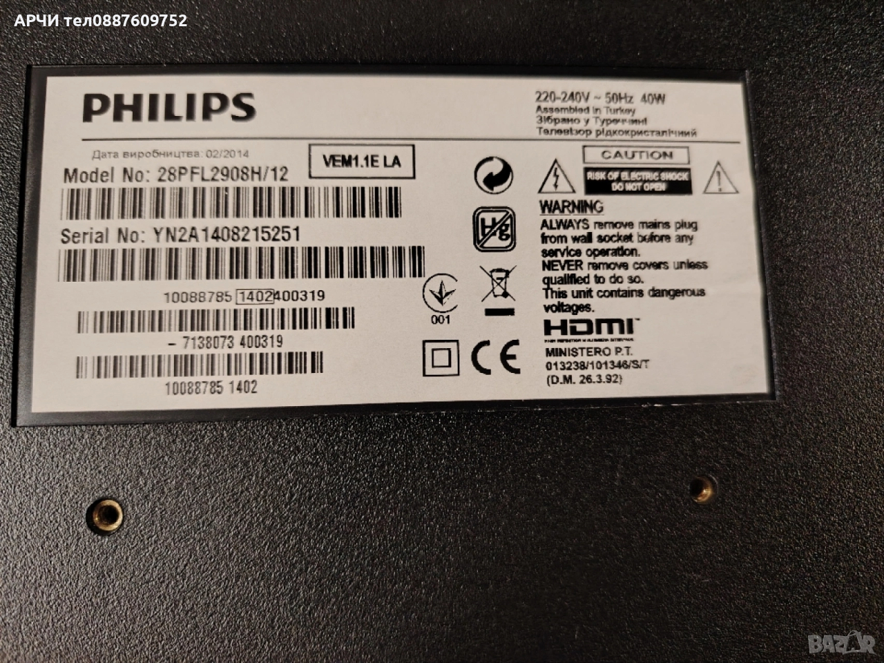 PHILIPS 2900 series Ултратънък LED телевизор 28PFL2908H/12 за части