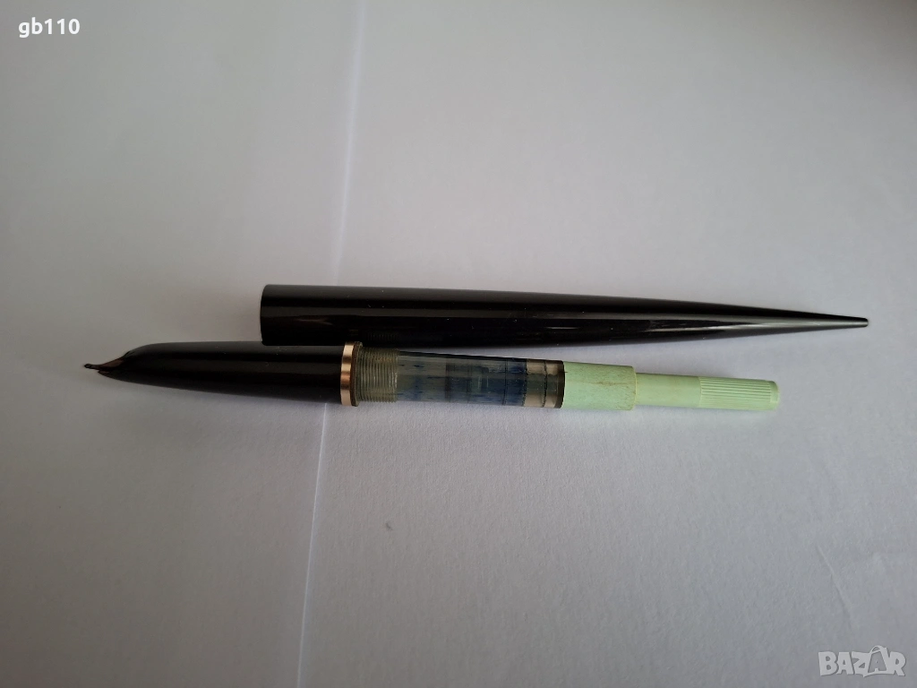 Писалката работи с обикновено мастило, с резервоар с бутало.