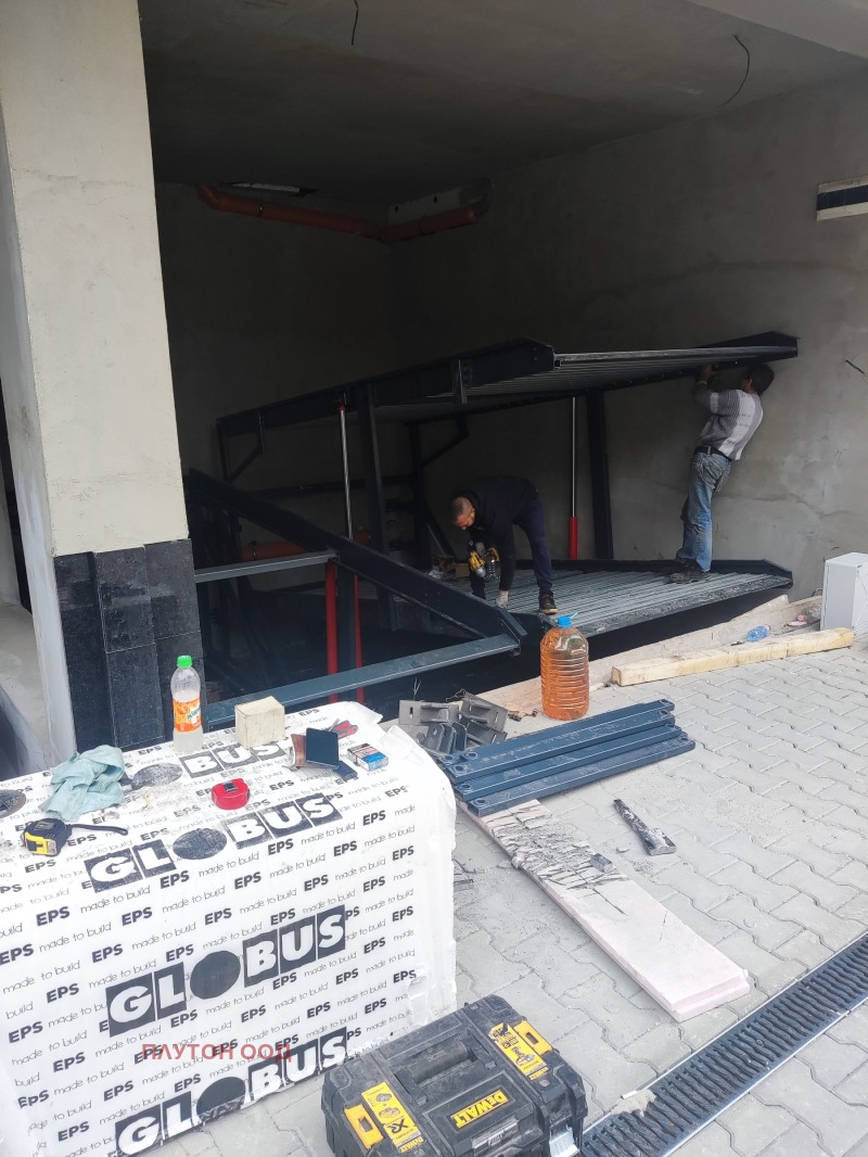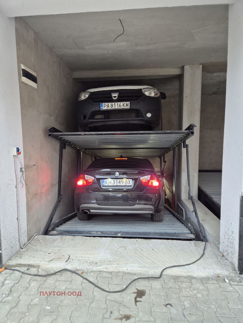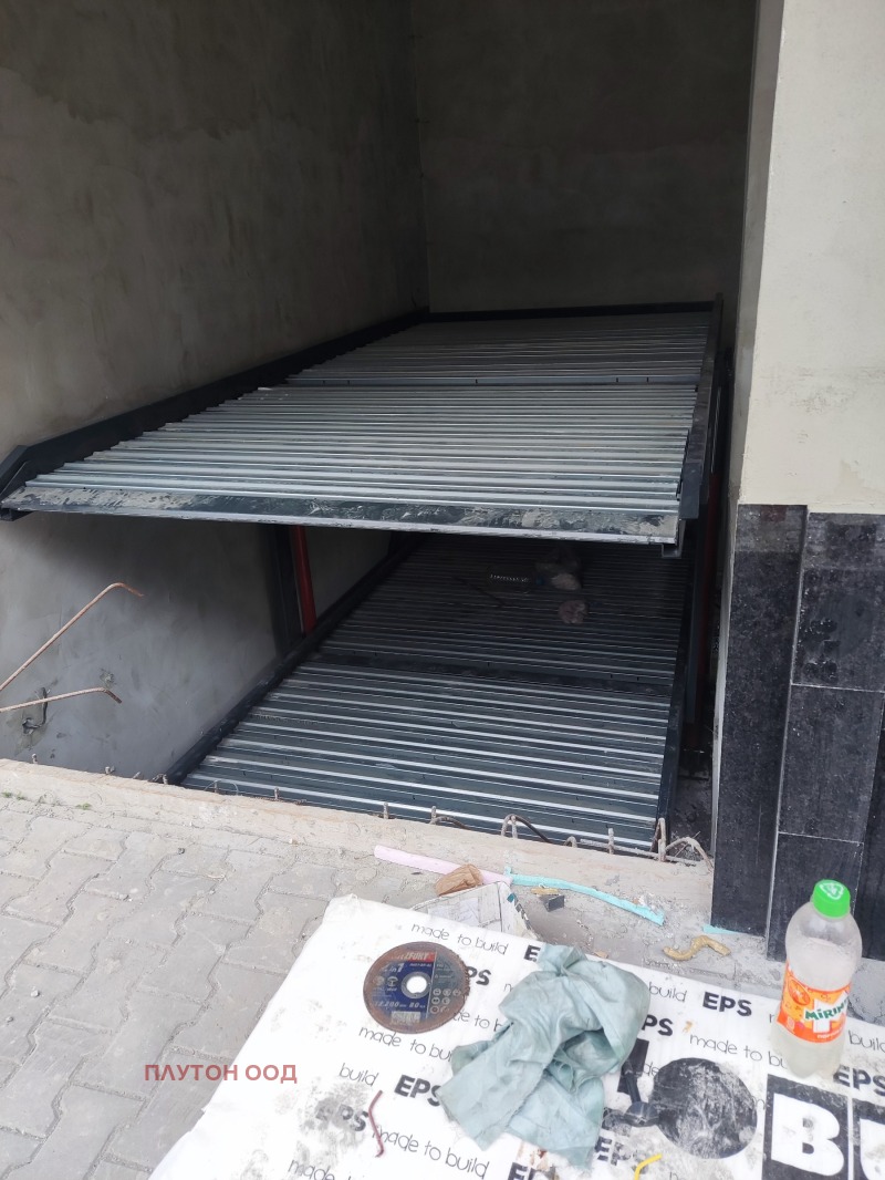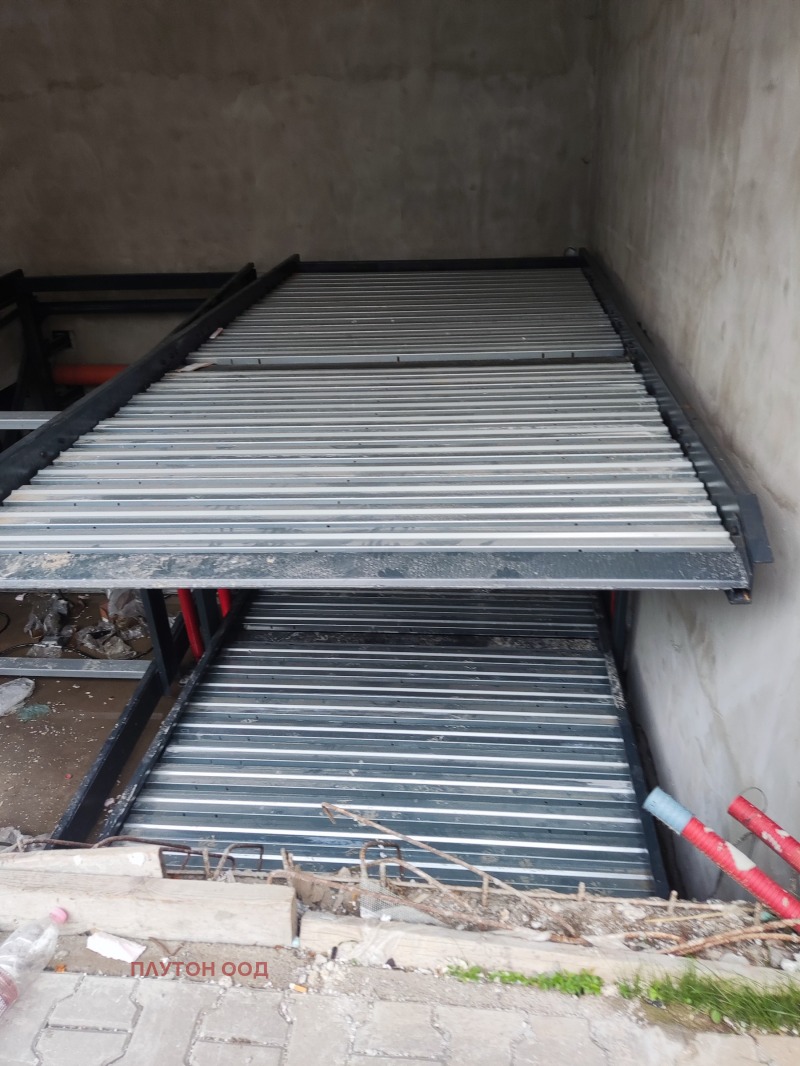 Вече с разрешение за ползване! Крайна цена! Надземни гаражи с двойни паркоместа, с платформи за независимо паркиране на две коли, във вертикална посока. Вътре, в сградата - на партер и сутерен. Платформите са с трифазен ток. Собствен трифазен електромер. Сградата е с акт 16. Адресът е София, ул. 'Панагюрище' 18. Възможност за закупуване на 1/2 идеална част от гаража, с 1/2 собственост върху платформата на цена от 28000 евро, крайна цена.