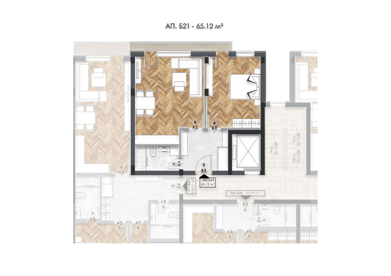 В сградата може да закупите към апаратамента и подземно парко място с големина от 18 кв.м до 25 кв.м.