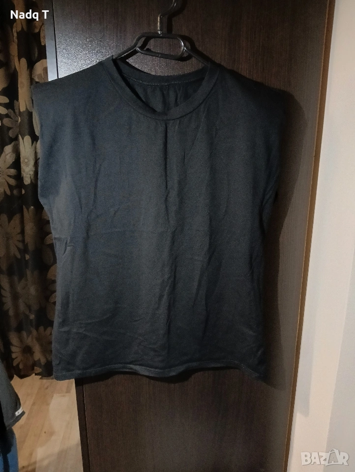 Потник с подплънки на раменете. Черен, свободен силует.