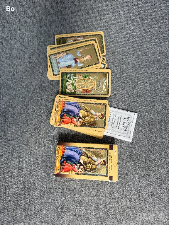 Продавам оригинално тесте таро карти Estensi Tarot – Golden Tarot of the Renaissance. Картите са с красиви ренесансови илюстрации и високо качество на изработка. Комплектът включва пълно тесте карти, оригинална кутия и книжка.