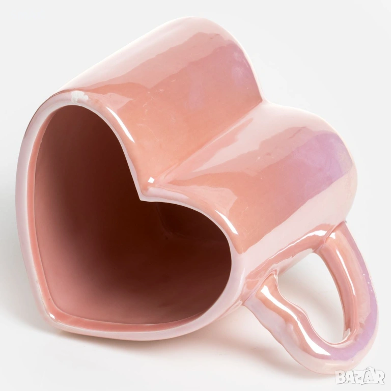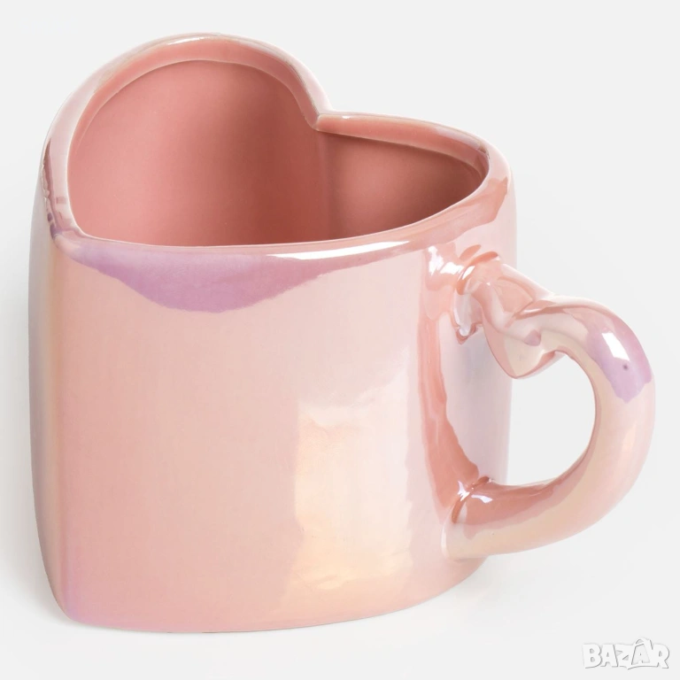 Сладка и стилна чаша с форма на сърце в розов цвят, перфектна за кафе, чай или топли напитки. Идеална за подарък или за създаване на уютна и романтична атмосфера у дома.