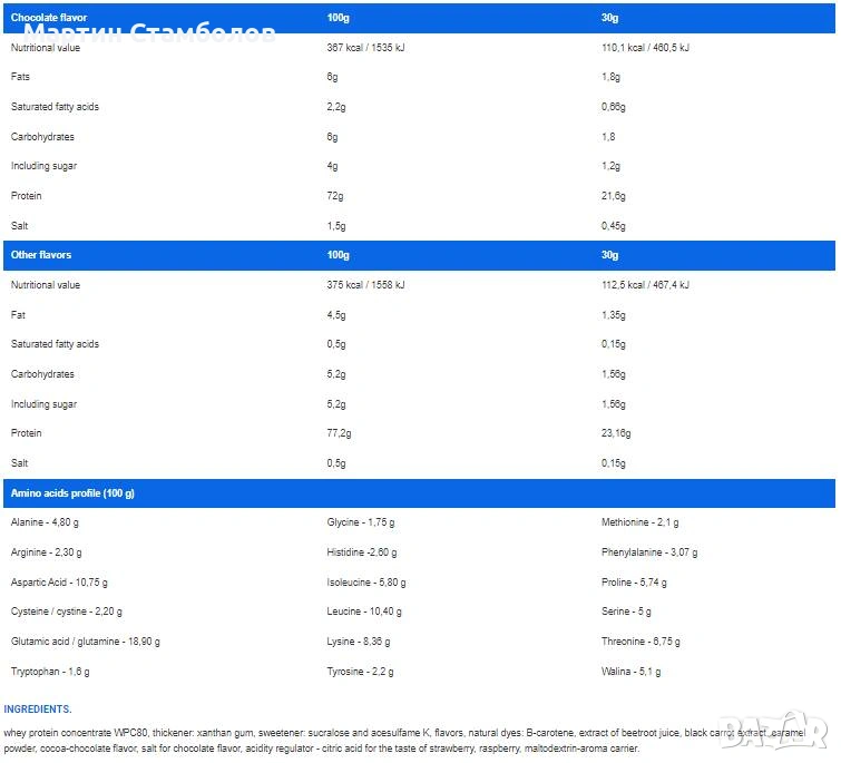 IronFlex WPC80 EDGE съдържа чист суроватъчен протеинов концентрат, който е богат на незаменими аминокиселини, включително BCAA, които подпомагат мускулната регенерация и намаляват катаболните процеси.