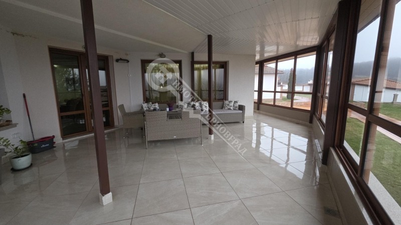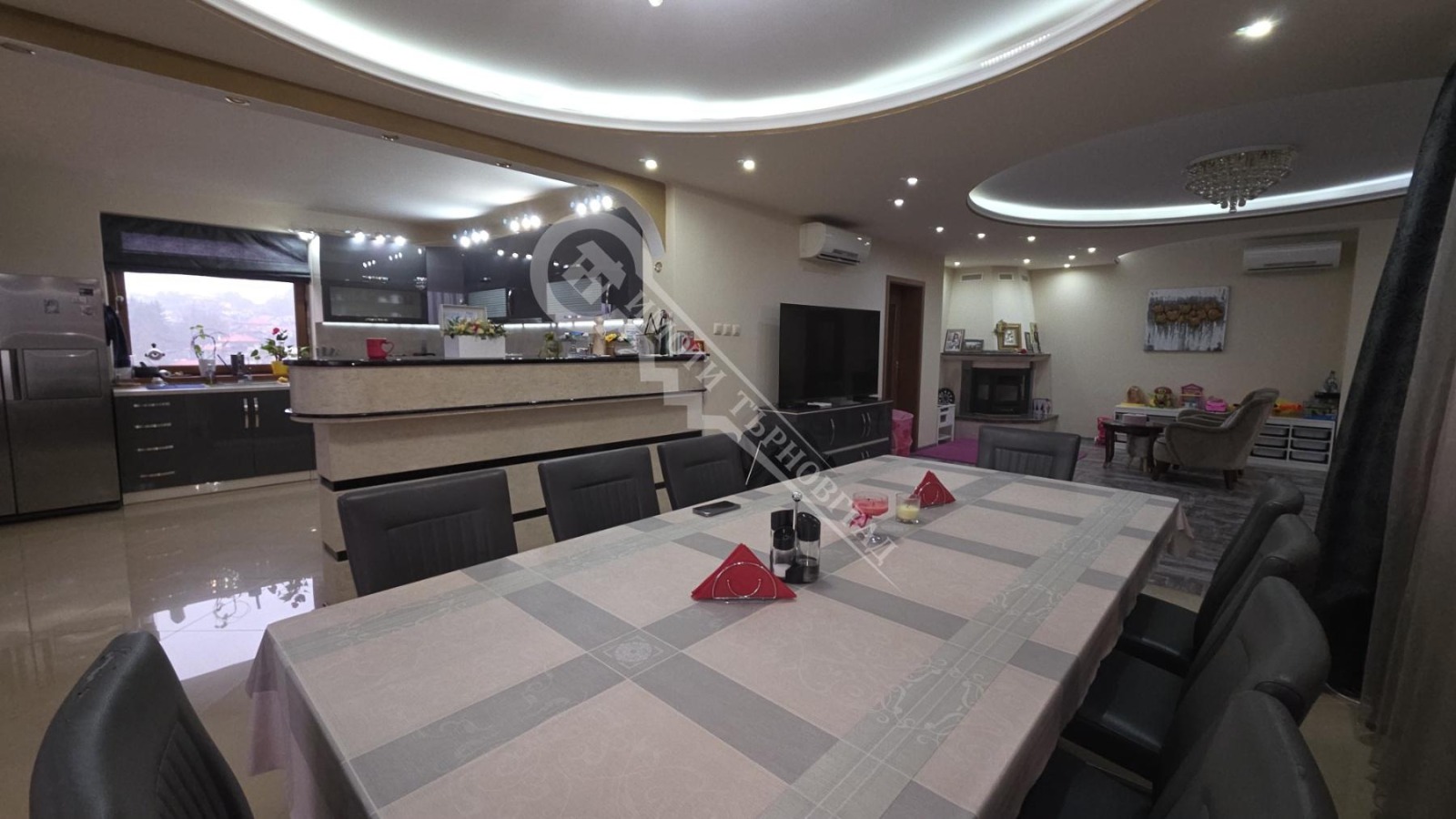 Имоти Търновград има удоволствието да представи изключителен имот за продажба, разположен в предпочитаното и спокойно село Ветринци само на минути от гр. Велико Търново, с отличен достъп, тишина, чист въздух и прекрасна природна среда. Локацията съчетава уединението на селския живот с удобствата и динамиката на града, което я прави изключително подходяща както за постоянно обитаване, така и за инвестиционен проект или бутиков туристически бизнес. Къщата е ново строителство с внушителна разгъната застроена площ от 718 кв.м., разположена върху равен и отлично поддържан парцел с площ от 4 200 кв.м. Имотът впечатлява още от пръв поглед с представителна фасада, модерна архитектура и хармонично вписване в околната среда. Просторното входно пространство с масивни стъпала и покрита тераса създава усещане за престиж, стабилност и висок стандарт на живот. Разпределението е изключително функционално и мащабно. На партерния етаж, който е 241.65 кв.м са обособени просторна дневна зона и фитнес помещение, като естествената светлина и високите тавани допринасят за усещането за простор и комфорт. Широко и представително стълбище води към горните етажи. Първият жилищен етаж , който е 261.78 кв.м , разполага с просторна дневна с кухненска част , с директен излаз към голяма тераса с гледка към двора, санитарен възел и две спални , като всяка е със собствена баня с тоалетна. Вторият етаж , който е 207.84 кв.м. включва четири просторни спални, всяка със собствен санитарен възел, с панорамна тераса , което прави имота идеален за голямо семейство, гости или развитие на къща за гости с висок клас обслужване. Отоплението е решено чрез парна инсталация на пелети, с допълнителна алтернатива чрез климатици, осигуряващи комфорт през всички сезони. Имотът е напълно завършен, обзаведен и оборудван с всичко необходимо, готов за незабавно нанасяне, без нужда от каквито и да било допълнителни инвестиции. Дворното пространство е оградено с дебел зид от 45 см. е истинско бижу професионално оформено, отлично поддържано, с монтирани пътеки до всяка точка на имота. Налице е покрита барбекю зона с кухня и трапезария, която е с квадратура от 39 кв.м , детски кът и открит басейн с четири местно джакузи , които създават перфектна среда за отдих, семейни събирания и развлечения. Външните настилки са изпълнени с висококачествени материали и придават завършен и луксозен облик на целия имот. Към имота има и шест самостоятелни гаражни клетки, осигуряващи удобство и допълнителна функционалност. Районът е тих, подреден и с усещане за сигурност, простор и спокойствие. Този имот е рядка възможност на пазара съчетание от мащаб, функционалност и отлична локация, подходящ както за представителен семеен дом, така и за високодоходна инвестиция с отличен потенциал.Оферта : 18008