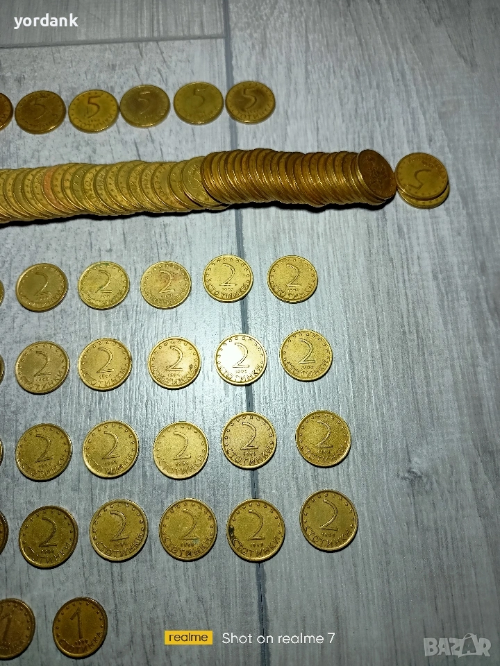 Български монети от 1999 г. Монетите са от 1 , 2 и 5 стотинки. Монетите от 1999 г. вече почти не се срещат в обращение,защото БНБ ги изтегля и заменя с тези от 2000 г. Рядко вече изпада някоя отделна монета и все по-рядко ще излизат от тези.
