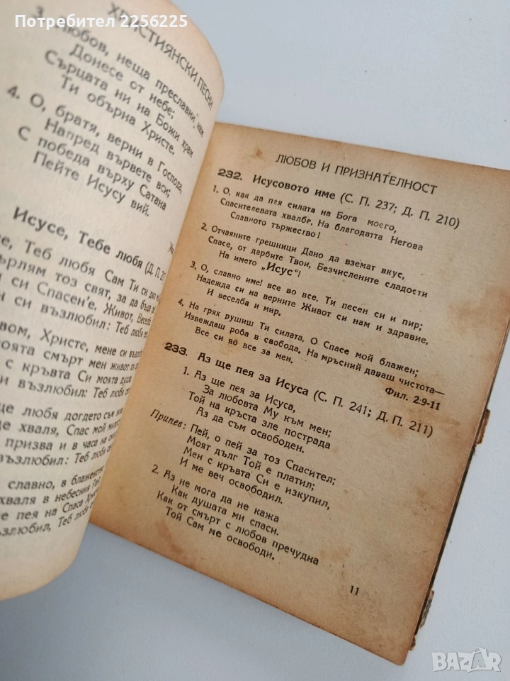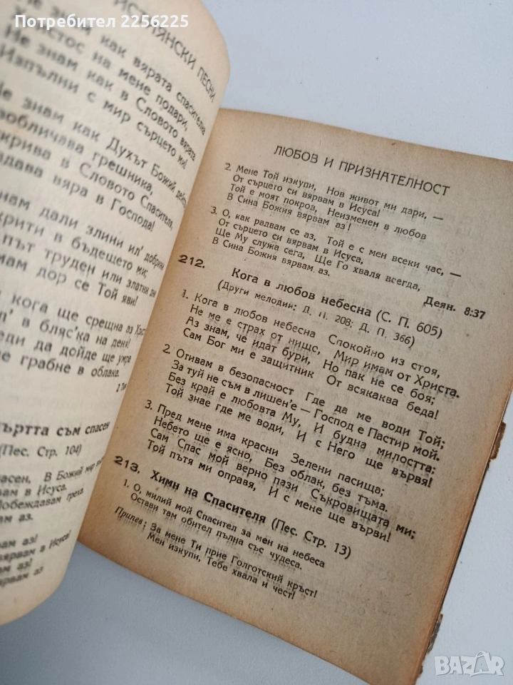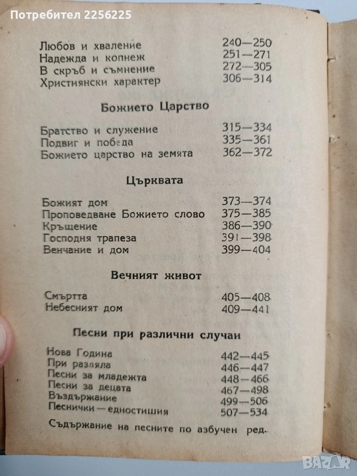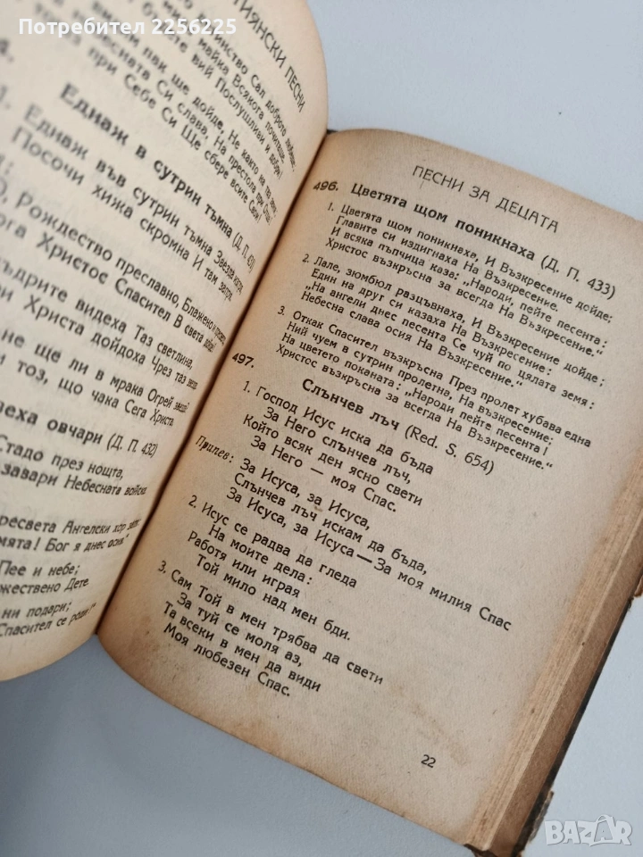 Твърди корици ,553 страници. Добро състояние ( пожълтели от времето страници). Формат 155/120мм. Много стара и много добре запазена книга. Съдържанието на песните не е снимано , тъй като е много страници.Цената е без коментар.