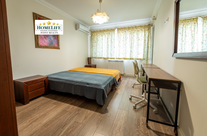 HomeLife Point ви предлага прекрасен просторен апартамент с три спални под наем в кв. Изгрев. Имота се намира в представителна сграда с контролиран достъп 5 мин. пешеходно разстояние от Метростанция. Разположен на шести етаж с панорамна гледка от дневната и кухнята към града. Подържан вход с луксозни общи части, парко място в подземния паркинг на сградата. Обзаведен и оборудван с всичко необходимо за комфортно обитаване!