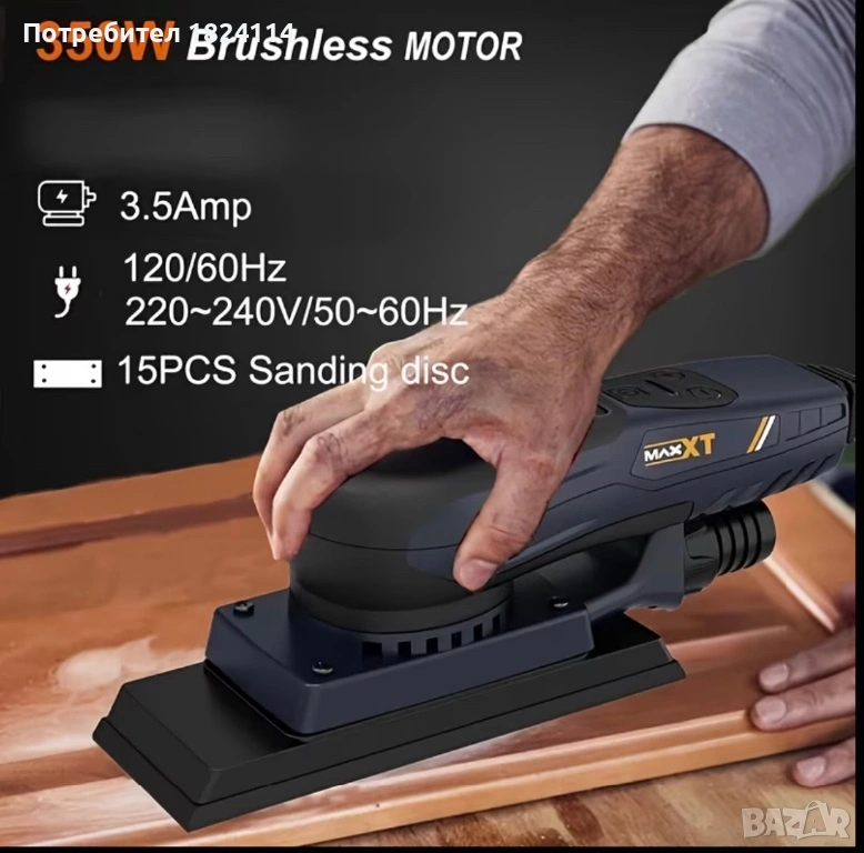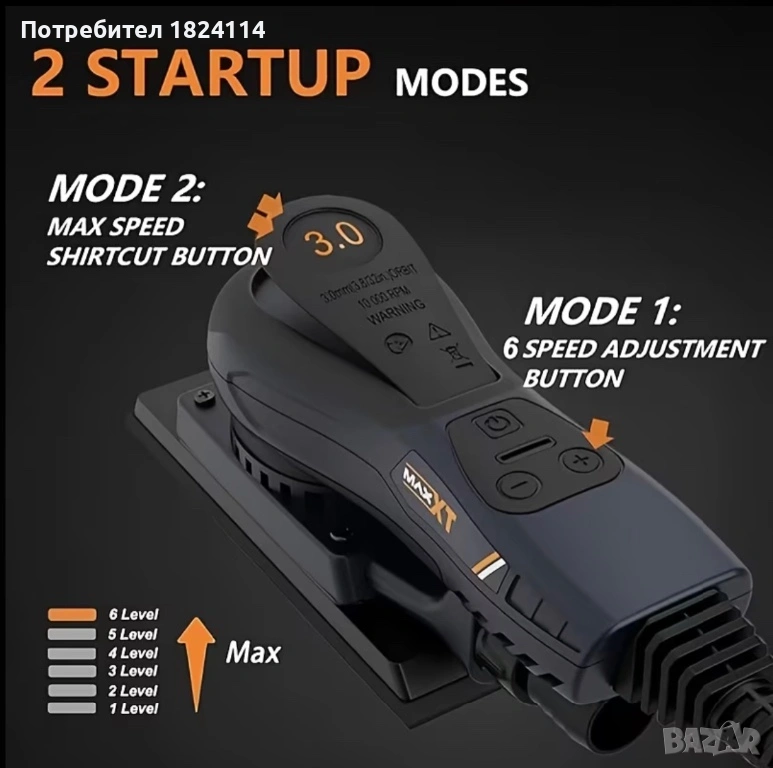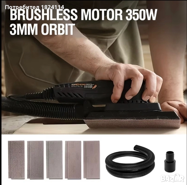 НОВА шлайфмашина (електрическо ренде за шлайфане) - MAXXT 3.0 мм шлайфмашина, оборудвана с множество листове безпрахова многофункционална шкурка, безчетков мотор с променлива скорост, подходяща за дървообработване,металообработване , автомобилна индустрия … (7.8 * 2.7-инчова шлайфмашина)