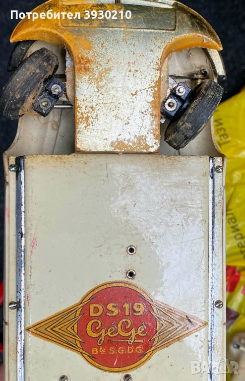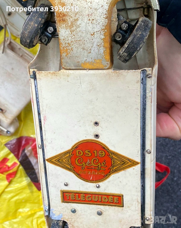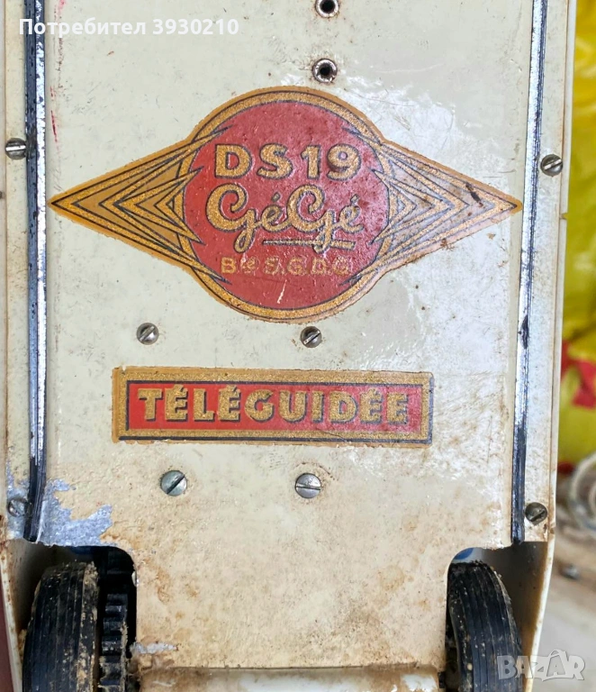 Пред вас е рядка антикварна играчка — Citroën DS 19 с дистанционно управление чрез кабел, произведена от известната френска марка GéGé през 50-те или 60-те години на миналия век.