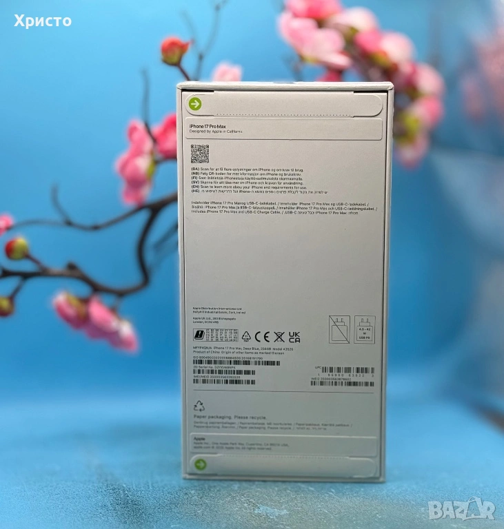 Продавам Apple iPhone 17 Pro Max, 256GB, Deep Blue, чисто нов и неразпечатан. Телефонът е закупен от чужбина и никога не е активиран или използван – фабрично запечатан.