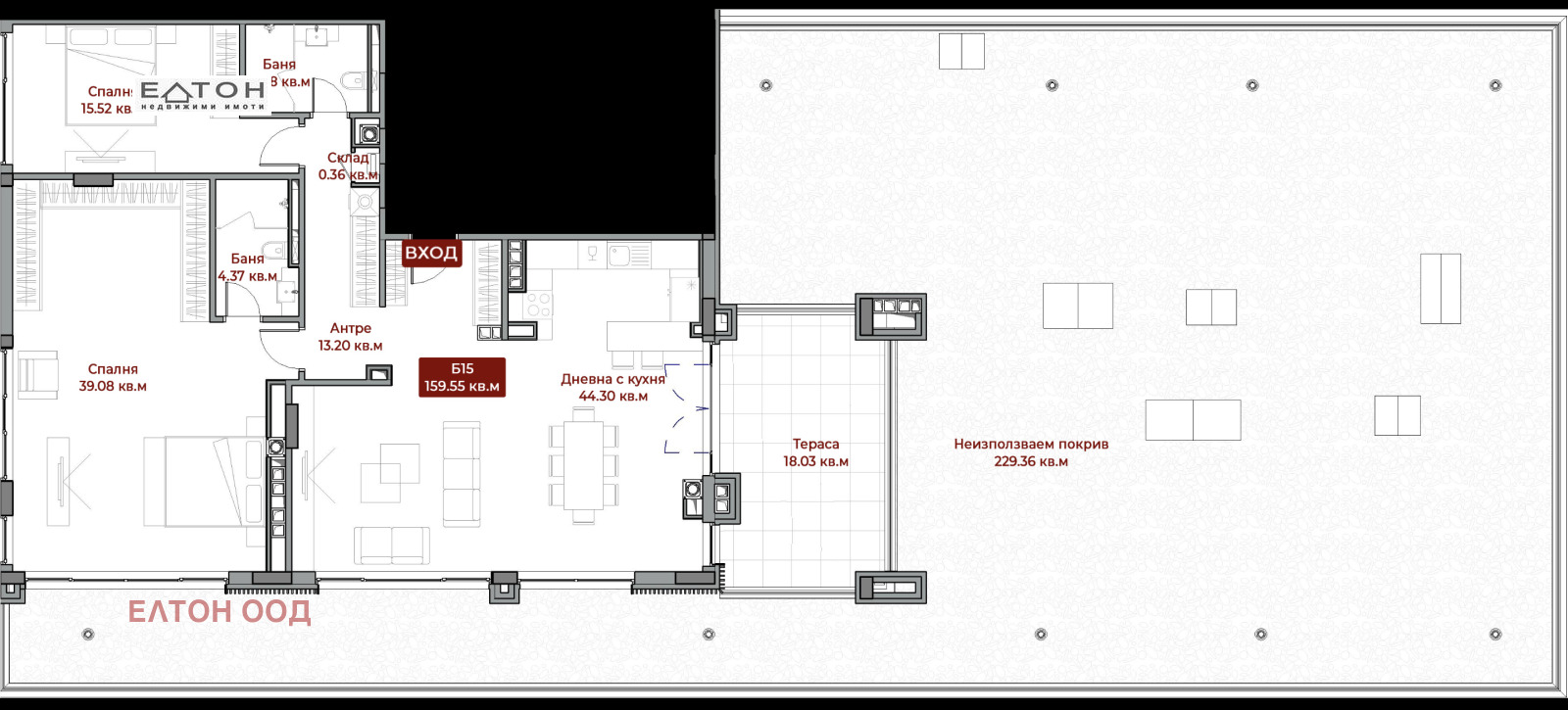Агенция за недвивижми имоти 'Елтон Имоти' продава панорамен 3-стаен апартамент (Пентхаус) в нова луксозна сграда в кв. Бояна, която е с награда 'Сграда на годината'.