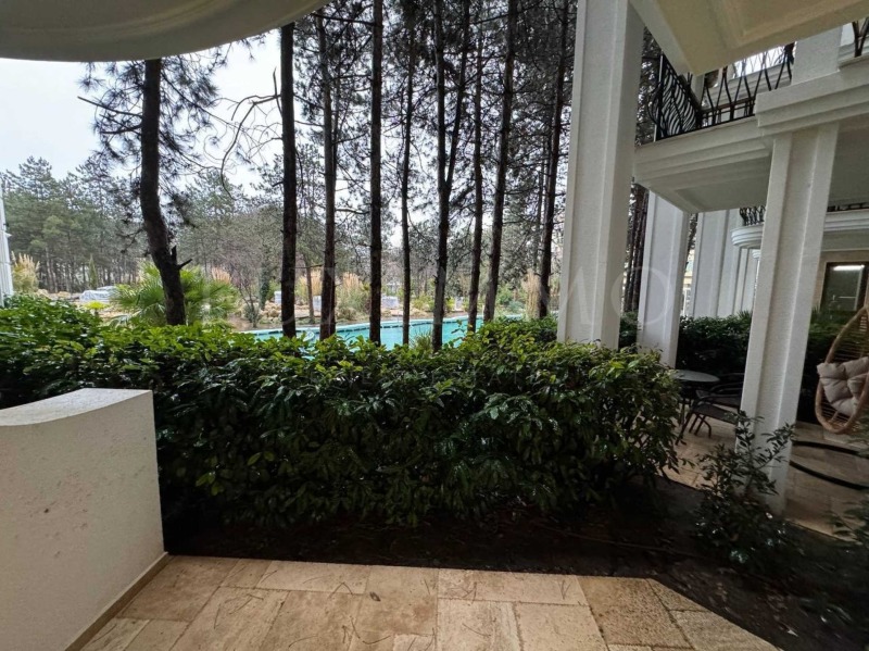 Имотът е с обща площ от 61 кв.м, разположен на 1-ви етаж с гледка към басейна.