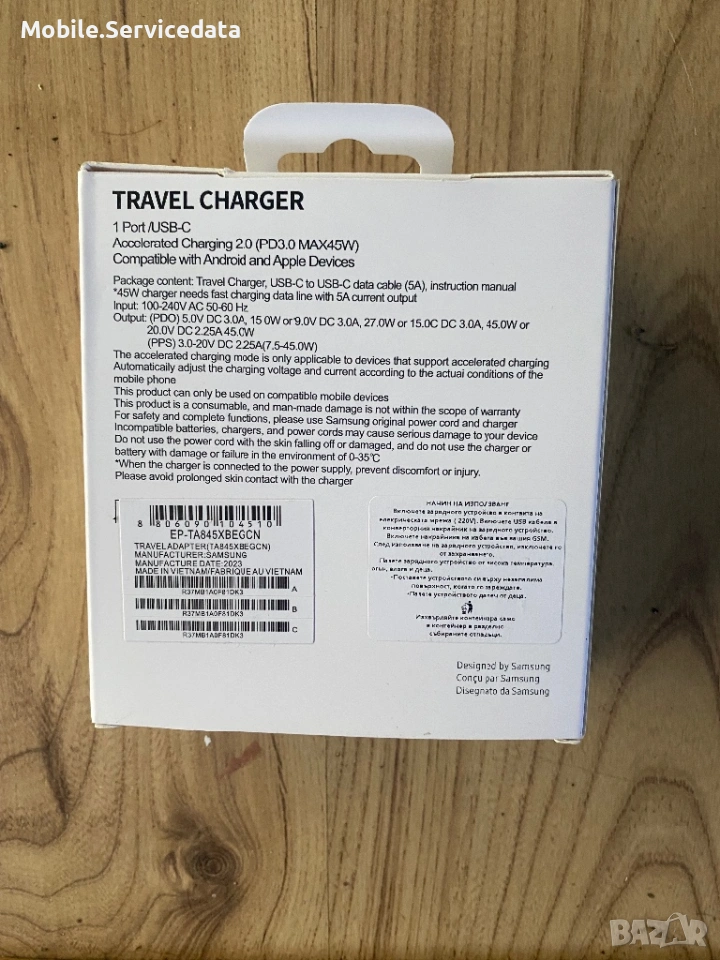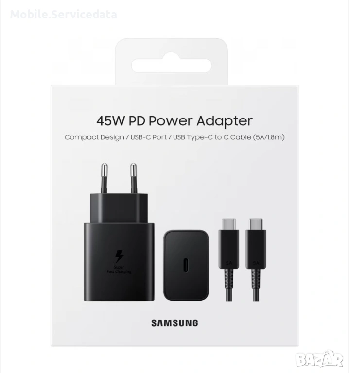 Мрежово зарядно устройство Samsung EP-T4510X SuperFast Charger 45W USB-C кабел 1,8 метра 5A черен → Обява 53417366