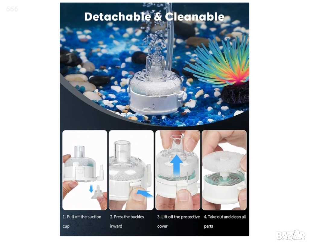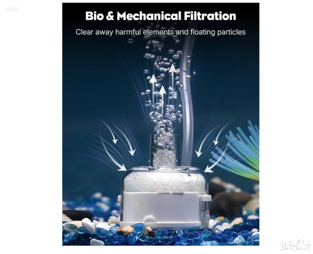 Механична и биологична филтрация: Филтърната гъба ефективно улавя плаващите частици, докато интегрираните био-топки лесно отстраняват вредните елементи. Това двойно действие за почистване значително подобрява качеството на водата и нивата на кислород във вашия аквариум.