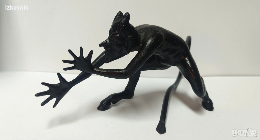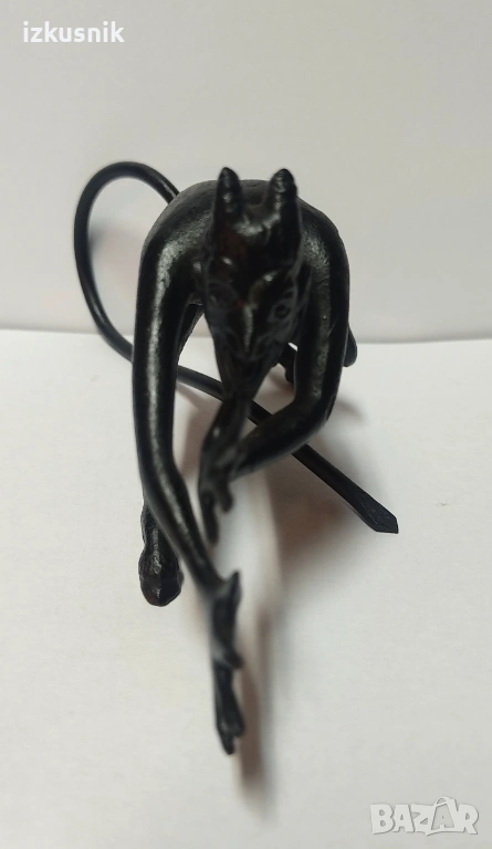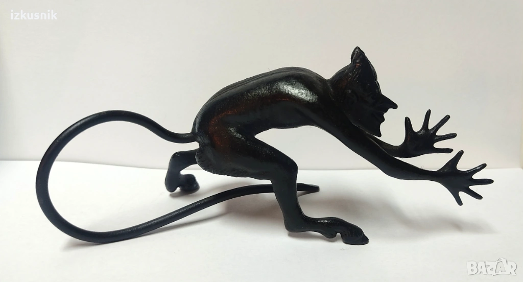 Чудесно запазена метална статуетка на весел дявол, създаващ настроение със закачливостта си.